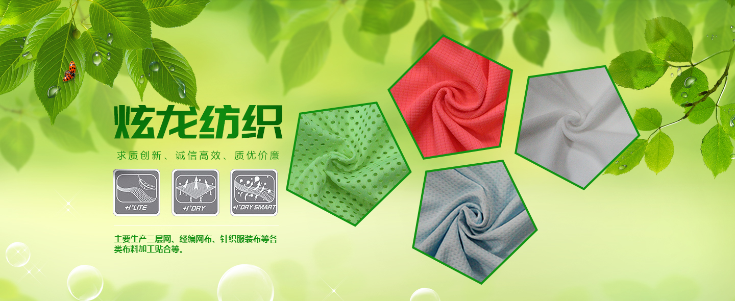 泉州市炫龍紡織科技有限公司位于中國(guó)福建晉江--中國(guó)鞋都,是一家集研發(fā)、生產(chǎn)、銷(xiāo)售為一體的紡織企業(yè)公司。主要生產(chǎn):三層網(wǎng)、經(jīng)編網(wǎng)布、針織服裝布、休閑時(shí)尚女裝網(wǎng)布、鞋用各類(lèi)BK布、拉毛布、大小提花布、賈卡提花、3D飛織、各類(lèi)布料加工貼合等。 公司秉承“求質(zhì)創(chuàng)新、誠(chéng)信高效、質(zhì)優(yōu)價(jià)廉”的經(jīng)營(yíng)理念為宗旨,竭誠(chéng)為廣大海內(nèi)外客戶(hù)求創(chuàng)一流的服務(wù)及優(yōu)質(zhì)的品質(zhì),歡迎海內(nèi)外的客戶(hù)供樣、定制及洽談合作。